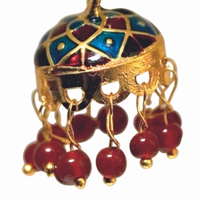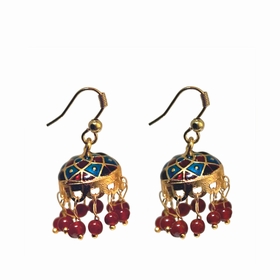 Boucles d'oreille en métal doré à la façon Bollywood. Dimensions : H2,5 x L1,5 cm (fermoir inclu) et diamètre 1,5 cm (pendant seul). On aime : leurs lignes finement ciselées, leurs couleurs pétillantes. Matière : métal et perles. Fermoir crochet. Pièce artisanale. Les couleurs et motifs (hors perles) peuvent varier d'un modèle à l'autre.