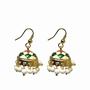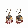 Boucles d'oreille en métal doré à la façon Bollywood. Dimensions : H2,5 x L1,5 cm (fermoir inclu) et diamètre 1,5 cm (pendant seul). On aime : leurs lignes finement ciselées, leurs couleurs pétillantes. Matière : métal et perles. Fermoir crochet. Pièce artisanale. Les couleurs et motifs (hors perles) peuvent varier d'un modèle à l'autre.