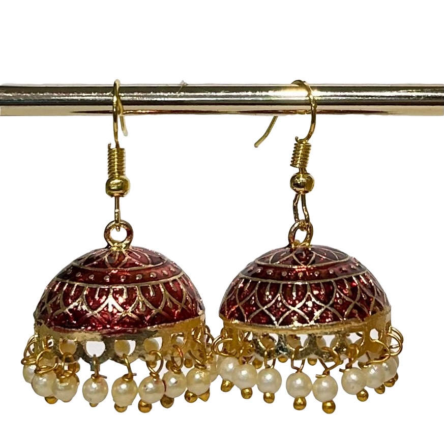 Boucles d'oreille en métal . On aime : leurs lignes finement ciselées et leurs petites perles qui tintent légèrement. Fermoir crochet. 2,5 cm de diamètre. Existe en plusieurs couleurs.