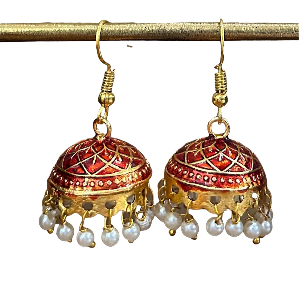 Boucles d'oreille en métal . On aime : leurs lignes finement ciselées et leurs petites perles qui tintent légèrement. Fermoir crochet. 1,8cm de diamètre.