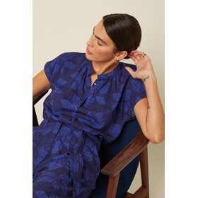 Encolure ronde. Manches courtes. Ajustement régulier. Fermeture à boutons. Floral. Non étirable. Tissé. Rayonne Composition: 60% rayon, 40% cotton Conseils d'entretien : Laver à l'envers à 30 °C. Lavage délicat. Ne pas utiliser d'eau de Javel. Repasser à température moyenne (**). Nettoyage à sec possible. Ne pas sécher en machine. Sécher à plat.