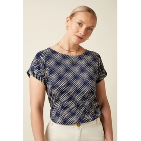 Top en encolure ronde Manches de casquette. Ajustement régulier. Géométrique. Étirer. Jersey Composition: 95% LENZING™ ECOVERO™ viscose, 5% elastane Care Instructions: Lavage à l’envers - 30° Lavage délicat. Ne pas blanchir. Fer à basse température (*). Convient pour le nettoyage à sec. Ne pas trumble sec. Sécher à plat
