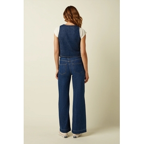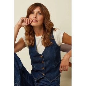 Ce gilet en maille circulaire allie style estival décontracté et denim intemporel. Son col V sans manches s'accorde avec tout, des chemises en lin aux t-shirts légers, tandis que son coton non extensible conserve sa forme même lors de vos escapades estivales les plus intenses. Une coupe classique aussi polyvalente que vous. Portez-le seul, noué ou superposé, pour un look beach-volley décontracté. Composition : 46 % CIRCULOSE®, 54 % coton régénéré Conseils d'entretien : Laver à l'envers à 30 °C, programme délicat. Ne pas utiliser d'eau de Javel. Repasser à température moyenne (**). Nettoyage à sec possible. Séchage en machine à basse température, programme délicat.
