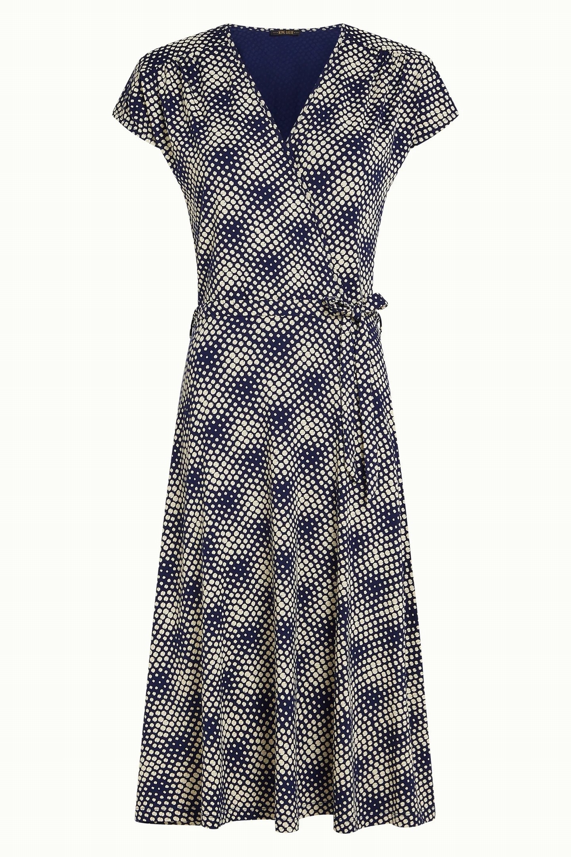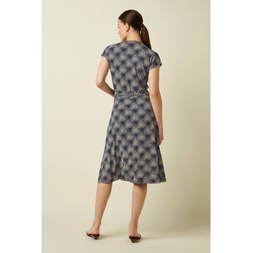 Robe col en V. Manches de casquette. Ceinture à cravate. Ajustement régulier. Longueur du genou. Légèrement évasé. Géométrique. Étirer. Jersey Composition: 95% LENZING™ ECOVERO™ viscose, 5% elastane Care Instructions: Lavage à l’envers - 30° Lavage délicat. Ne pas blanchir. Fer à basse température (*). Convient pour le nettoyage à sec. Ne pas trumble sec. Sécher à plat