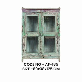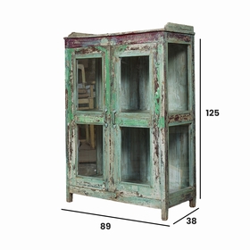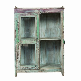 Petit meuble indien ancienne à la patine d'origine verte en teck. Pièce unique. Possède deux portes vitrées et une étagère. Forfait livraison par coursier sur Paris - RP : 50€ pour une livraison sur Paris (75) et 70€ pour une livraison en Région Parisienne (77-78-91-92-93-94-95). Pour une livraison sur un autre département, nous vous invitons à nous contacter par mail emmanuelle.sensitiveetfils@gmail.com afin d'établir un devis personnalisé.