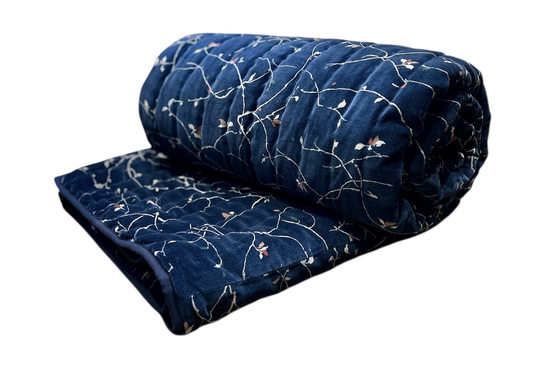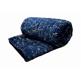 Dessus de lit molletonné et surpiqué à la main en velours de coton. Intérieur polyester. Courte pointe à poser sur votre lit . Le velours imprimé est lumineux donc il sera décoratif le jour et extrêmement douillet et confortable la nuit ! Face unie 100% coton. Motif Sensitive et Fils japonisant "Spring". Dimensions : 200 X 200 cm Existe en 3 coloris : rouge ,marine , parme
