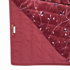 Dessus de lit molletonné et surpiqué à la main en velours de coton. Intérieur polyester. Courte pointe à poser sur votre lit . Le velours imprimé est lumineux donc il sera décoratif le jour et extrêmement douillet et confortable la nuit ! Face unie 100% coton. Motif Sensitive et Fils japonisant "Spring". Dimensions : 200 X 90 cm Existe en 3 coloris : rouge ,marine , parme