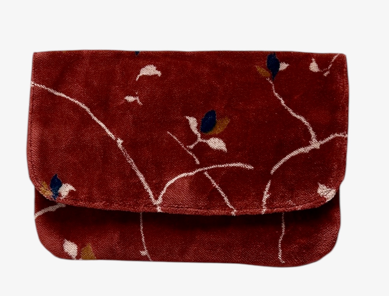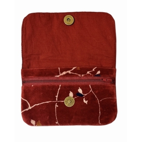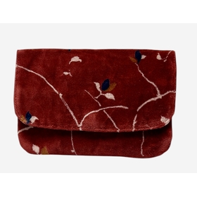 Porte-feuille en velours de coton doublé en coton. Comporte une pochette intériure principale avec 2 compartiments et une autre pochette zippée . Cette porte-feuille tout doux existe aussi en motif "tournesol" , couleur grise.