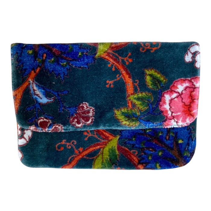 Grand porte-feuille ou petit sac de soirée , élégant et discret en velours de coton , un accessoire délicat et efficace . Fermeture zippée et plusieurs pochettes à l'intérieur. Doublure en coton uni. Existe en 3 couleurs.