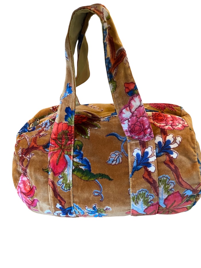 Petit sac de sport ou de voyage en velours de coton doublé en coton uni avec poche intérieure et fermeture éclair . Une poche avec zip également à l'intérieur .