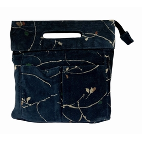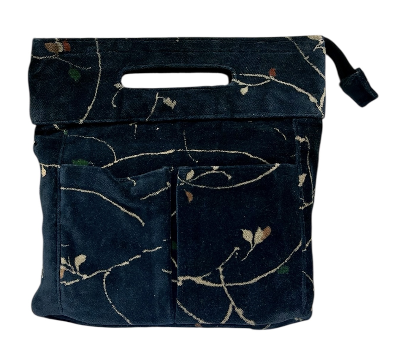 Trousse de toilette et petit sac en velours de coton, doublé en coton. Poignée pour tenir à la main , sac zippé sur le dessus avec une poche principale +2 compartiments séparés à l'intérieur et 2 petites poches extérieurs. Existe dans le motif " tournesol" fond gris et le motif japonisant "spring" en marine et rouge.