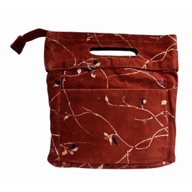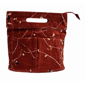 Trousse de toilette et petit sac en velours de coton, doublé en coton. Poignée pour tenir à la main , sac zippé sur le dessus avec une poche principale +2 compartiments séparés à l'intérieur et 2 petites poches extérieurs. Existe dans le motif " tournesol" fond gris et le motif japonisant "spring" en marine et rouge.