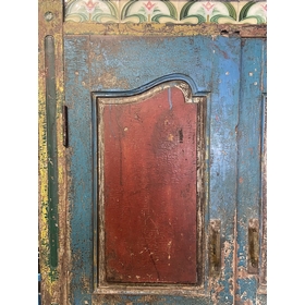 Grande armoire indienne en teck ancien, patines d'origines rouge , bleue et verte. Possède une frise en céramique en haut et 2 tiroirs, 3 étagères à l'intérieure. Une belle pièce à placer dans une vaste pièce. Forfait livraison par coursier sur Paris - RP : 50€ pour une livraison sur Paris (75) et 70€ pour une livraison en Région Parisienne (77-78-91-92-93-94-95). Pour une livraison sur un autre département, nous vous invitons à nous contacter par mail emmanuelle.sensitiveetfils@gmail.com afin d'établir un devis personnalisé.