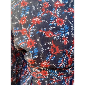 Kimono en coton. Idéal pour le voyage et la maison. A offrir et à s'offrir ! Motif fleurs fond beige, imprimé à la main au "block print". Taille unique - Hauteur 114 cm, Largeur 73 cm