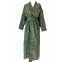 Kimono en coton 100% imprimé aux tampons de bois sculptés à la main. Motif "floraux" sur fond vert. Idéal pour le voyage et la maison. Taille unique - Hauteur 114 cm, Largeur 73 cm